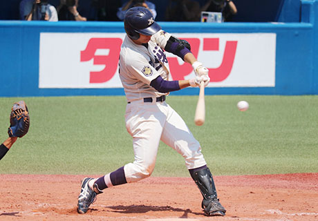 6/17(月) 決勝 vs.佛教大: 9回に相手を突き放す適時二塁打を放ち3打点の活躍を見せた、明大・喜多選手